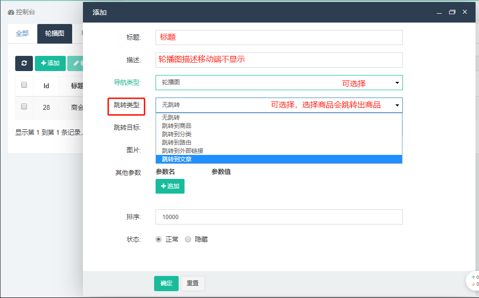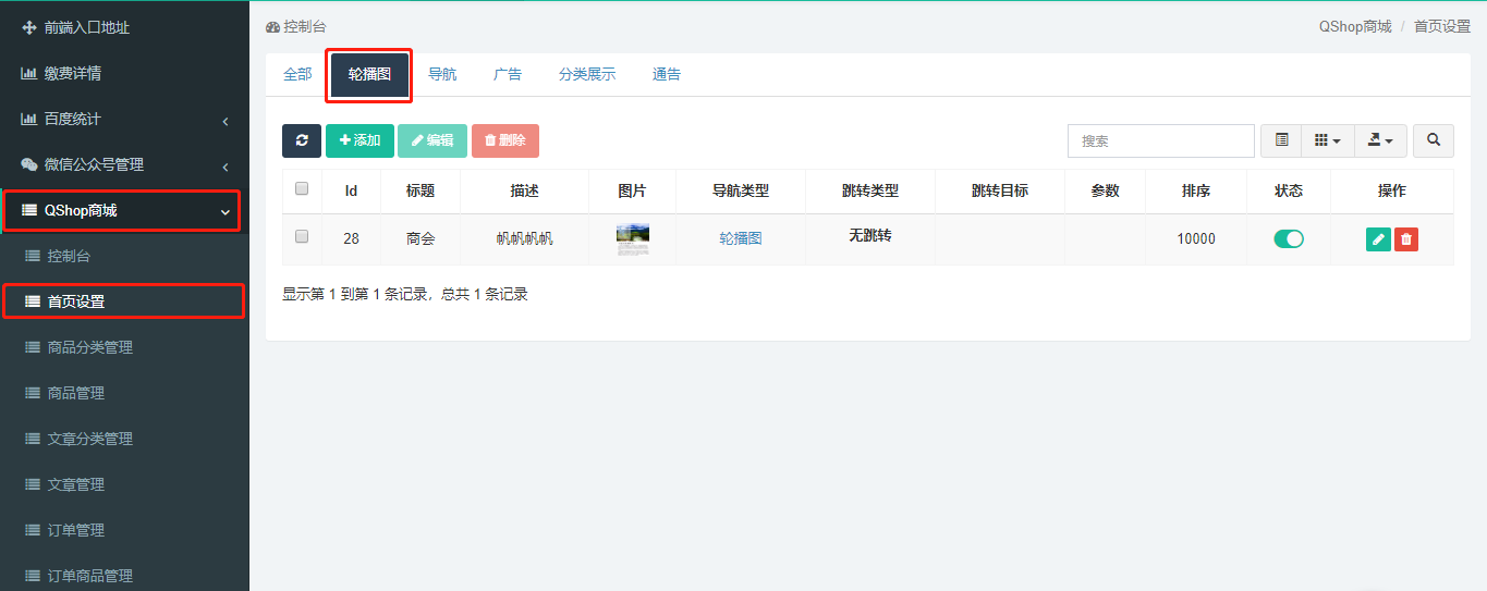 设置首页轮播图的步骤:【Qshop商城】-【首页设置】-【添加】-【轮播图】