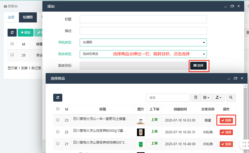 选择跳转商品,在移动端点击图片会跳转到购买商品页面
