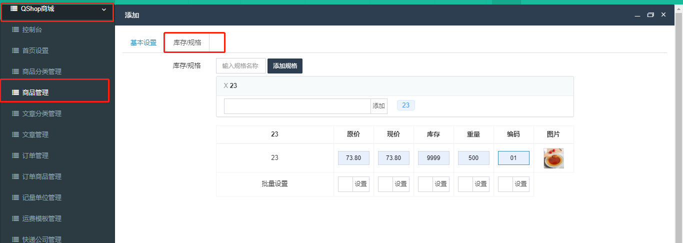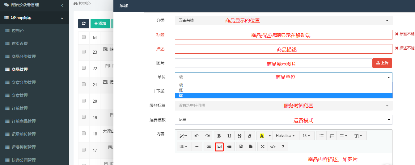 商品管理设置【Qshop商城】-【商品管理】-【添加】