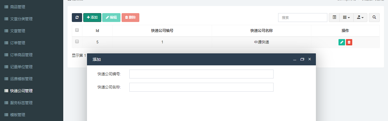 商品快递管理:【Qshop商城】-【快递公司管理】-【添加】