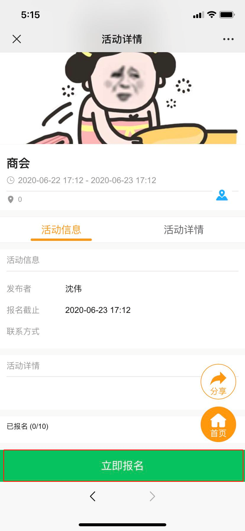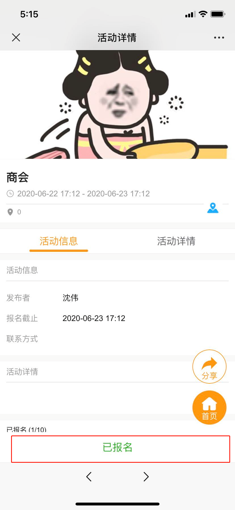 报名:移动端[活动报名]选择你要报名的活动,[立即报名],会显示[报名成功]
