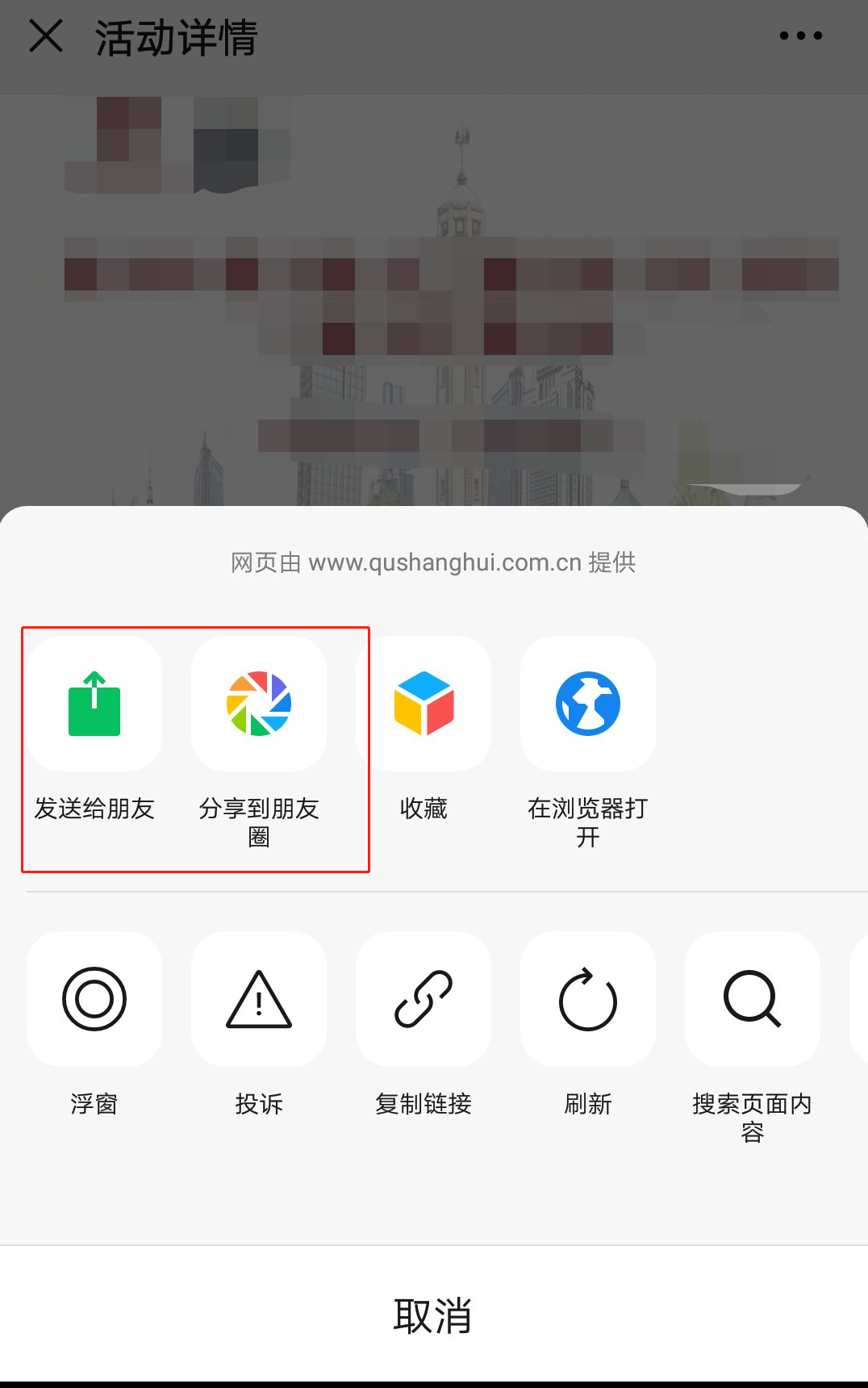 点击您要分享的活动右上角三个小点点分享就可以了