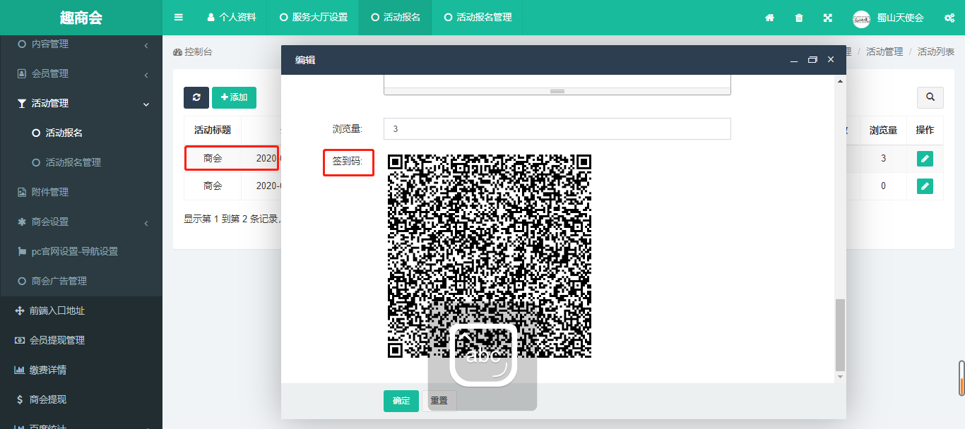 目录 搜索 一、新功能发布记录二、开篇:搭建和使用任务清单三、管理后台使用指南(按页面)(一) 控制台(二)会员管理系统2.1 会员个人信息库2.2 会员企业库2.3 会员单位联系人2.4 入会申请2.5 非会员个人信息2.6 非会员企业库2.7 会费管理在线缴/交会费的操作2.8 在会历史数据2.9 用户系统设置2.9.1 用户权限2.9.2 职务与会费标准2.9.3 会员类型2.10 分支机构2.11 行为/贡献2.12 积分管理(三)新闻/文章管理3.1 已发布高级编辑插入图片\选择图片使用图文模板新闻头部和尾部怎样添加进高级编辑模板里插入PDF、WORD、EXCEL文档发布页面介绍(新闻类)插入视频3.2 待审核3.3 草稿/撤回(四)活动管理4.1、活动发布和常规使用报名和签到管理4.2、草稿/撤回4.3、抽奖系统4.4、活动类型4.5、酒店客房管理4.6、报名表增项4.7 高级(五)供需管理(六)消息管理(营销)6.1. 消息发送管理6.2. 应用场景模版管理6.3. 短信管理(七)更多内容(七.2)电子会刊/报告类文件(七.1)图形链接管理(LOGO墙)7.1 链接管理7.2 设置图形链接分类(七.3)附件管理(云盘)(八)第三方媒体管理8.1. 微信群发管理8.2. 微信公众号文章8.3. 微信设置自定义菜单链接地址微信公众号自定义菜单怎样设置微信公众号入口地址(九)系统设置个人资料9.1. 商会基本和设置9.5 支付配置9.3. cms(模块和子分类)管理9.2. 管理员和部门10.4.1. 管理员10.4.2. 设置管理后台的部门和权限9.3. 移动端设置10.6.1. 用户端服务大厅设置广告设置9.4. 云官网设置9.7.1 站点设置9.7.2 官网导航/菜单设置9.7.3 官网广告管理9.7.4 官网友情链接设置友情链接管理友情链接组管理焦点文章云上党建9.5 官网模版设置9.6 账号管家(十)服务预约系统商家服务商家管理视频管理(十一)自定义表单22.退出登录添加秘书处人员和设置联系秘书处四、管理后台使用常见问题9.内容标题标签设置和标签签名申请9.1.申请标签签名步骤9.2内容标题标签设置1.明星会员相同职务的排序2.登录个人账号没有某一个权限怎么办,例如业务系统3.给新闻分类,选择分类显示数字4.用户端看到的文章里图片靠右,或者调整图片所有位置和大小5.子人员忘记密码怎么修改密码6.供需和新闻如何在后台不删除,移动端不显示,7.明星会员怎么添加8.填写了会员企业库,通讯录会员下面不显示企业信息9.商会学院新闻上传不了?11.高级编辑器加视频在高级编辑器里面添加视频在新闻编辑页面添加视频12.往期回顾使用高级编辑怎么设置13.新闻发布整个流程添加云平台群发微信公众号添加新闻标题标签新闻分类14.后台和移动端发布供需对接查看和使用供需对接查看分享供需收藏供需拨打电话开启供需对接添加供需对接设置供需对接标签查看供需对接15.会企关联自动展示16.商会商城完善说明轮播图导航广告分类展示通告商品分类管理商品添加记量单位管理运费模板管理快递公司管理服务标签管理订单管理移动端我的页面展示商品展示如何选择分类?17.消息管理(营销)签名设置短信模板设置短信请求管理系统短信设置短信发送日志管理短信充值申请签名注意事项18怎样用代码复制微信公众号新闻样式19,新闻群发功能优化新闻管理云平台同步素材库管理公众号群发管理公众号文章素材管理20.高级编辑器保存问题21.会员申请入口在哪里可以找到?22.商会会员如何操作才算同意入会成功?在线催缴会费的几种方式(自动、手动)开启或者关闭自动发送催缴会费消息通知,开启或者关闭自动发送催缴会费消息通知,开启和关闭自动发送的消息通知解析公众号和其它自媒体内容,保持内容和样式不变的操作管理后台综合功能实现五、用户端(移动端)使用说明六、移动端常见问题解答1.商会职务排序,相同商会职务的排序,不同商会职务的排序2.相同商会职务调整排序?3.电子会刊/行业报告和新闻里的文件打开很慢或者打不开?4.添加了会员企业在首页没有展示5.分享失败处理方式1.登录和激活会员身份2.在线填写入会申请3.通讯录4.会员企业5.发布图文信息6.查看/分享新闻7.查看/报名/分享/签到活动发布报名分享签到活动8.联系秘书处-拨打座机和秘书处员工手机9.查看商会地址和导航10.使用商会其它服务和查看内容11.兄弟商会12.搜索新闻、企业、会员等内容13.编辑个人资料14.【我的企业】-编辑企业资料15.使用【我的名片】16.【我的会费】-查看会费到期时间和在线缴会费17.我的笔记18.云平台如何无限次群发公众号消息19.会员信息为什么不能删除?我们如何隐藏会员信息?20.如何将微信公众号添加到桌面快捷操作21.如何将公众号添加到桌面快捷操作第三方平台操作教程开通绑定微信支付功能详细教程02.移动端会员缴纳会费操作流程03.查询云平台会员缴费详情操作指南04.微信商户平台提现操作步骤和到账时间05.微信支付商户费率明细表域名申请和ICP备案公众号历史已群发数据同步操作其它操作-临时域名短链生成 短链接生成公安备案/京公网安备下载网站域名证书查看备案IP地址云平台操作指南(视频)1.云平台新闻发布和高级编辑器使用操作指南2.如何通过云平台群发公众号图文消息3.云平台短信模板申请和发送模板消息操作指南4.云平台设置微信公众号菜单栏操作方法5.云平台上传会员头像操作指南6.云平台会员分组管理和开通会员权限操作指南7.会员职务管理和会费标准设定操作指南8.云平台移动端会员个性