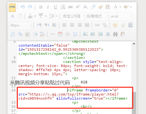 然后嘞,打开你的高级编辑页面,点击左上角HTML,找到你要放置在哪里的,回车把你复制的代码粘贴到这里
