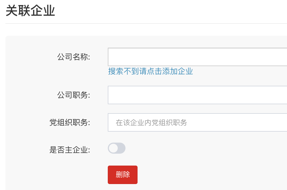 关联企业-工作经历:都是多填项,点击每项的下面添加更多按钮,如图: