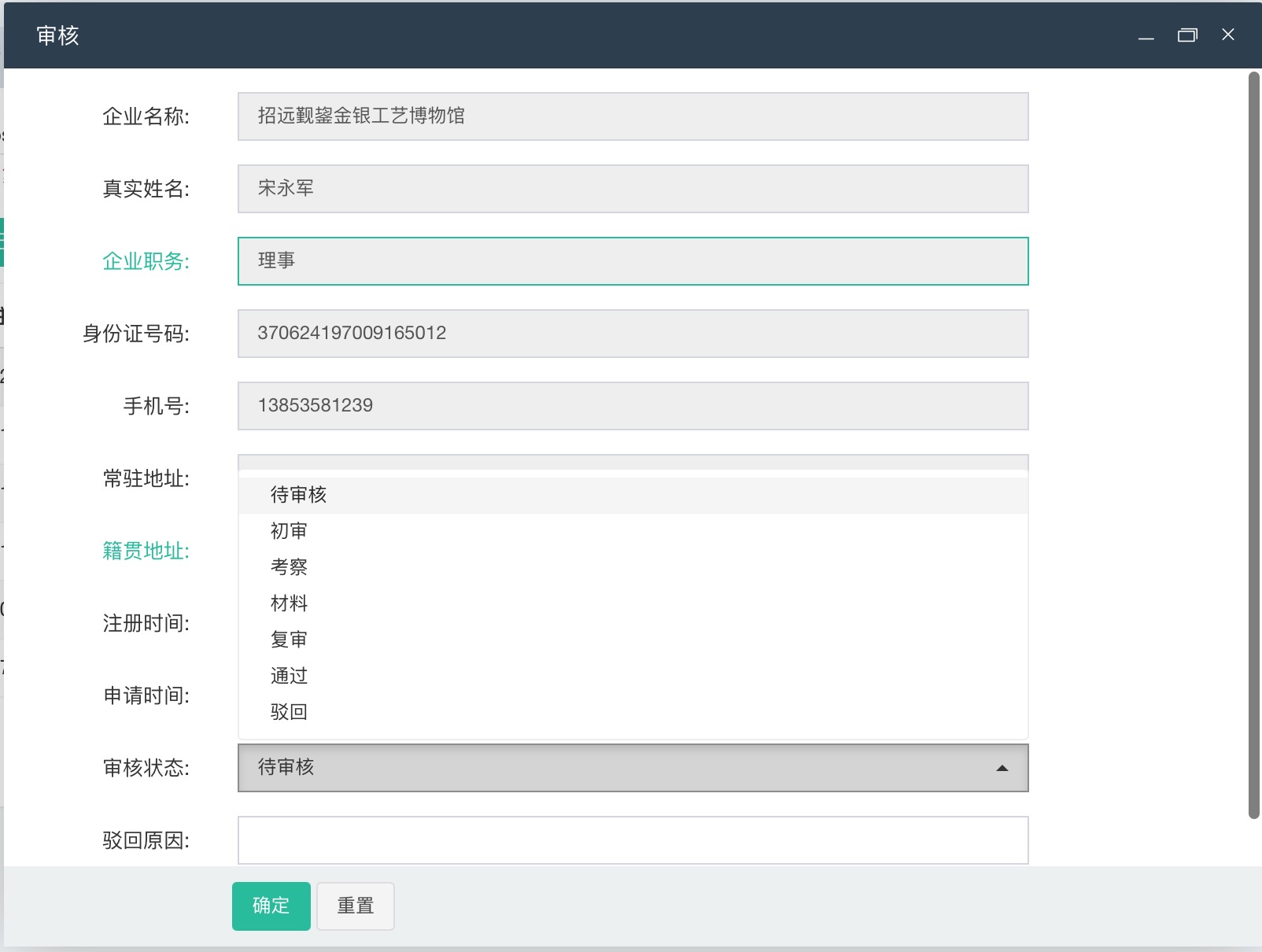 - 点“审核”,进入审核页面,对该用户进行审核。