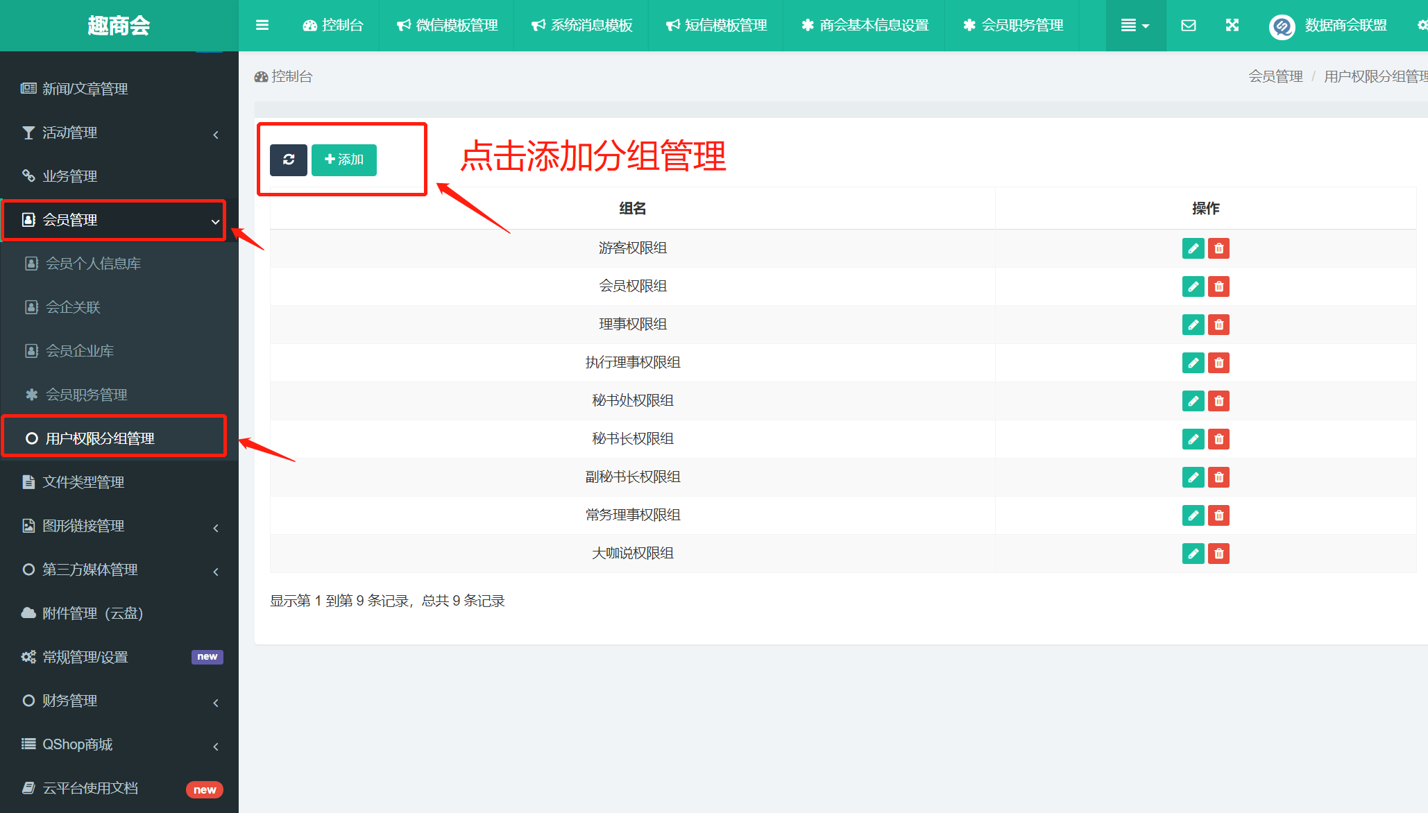 添加:点击添加【分组管理】内容