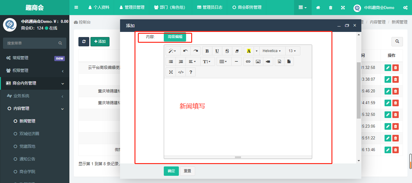步骤:【新闻/文章管理】-【添加】-【高级编辑】-【我的图库】-【上传图片】 点击图片就会到编辑模板上