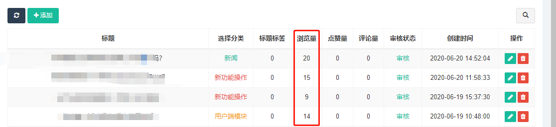 **13.浏览量和点赞量:**用户端浏览量显示效果,默认为0,在移动端点一次增加1,可以手动设置。