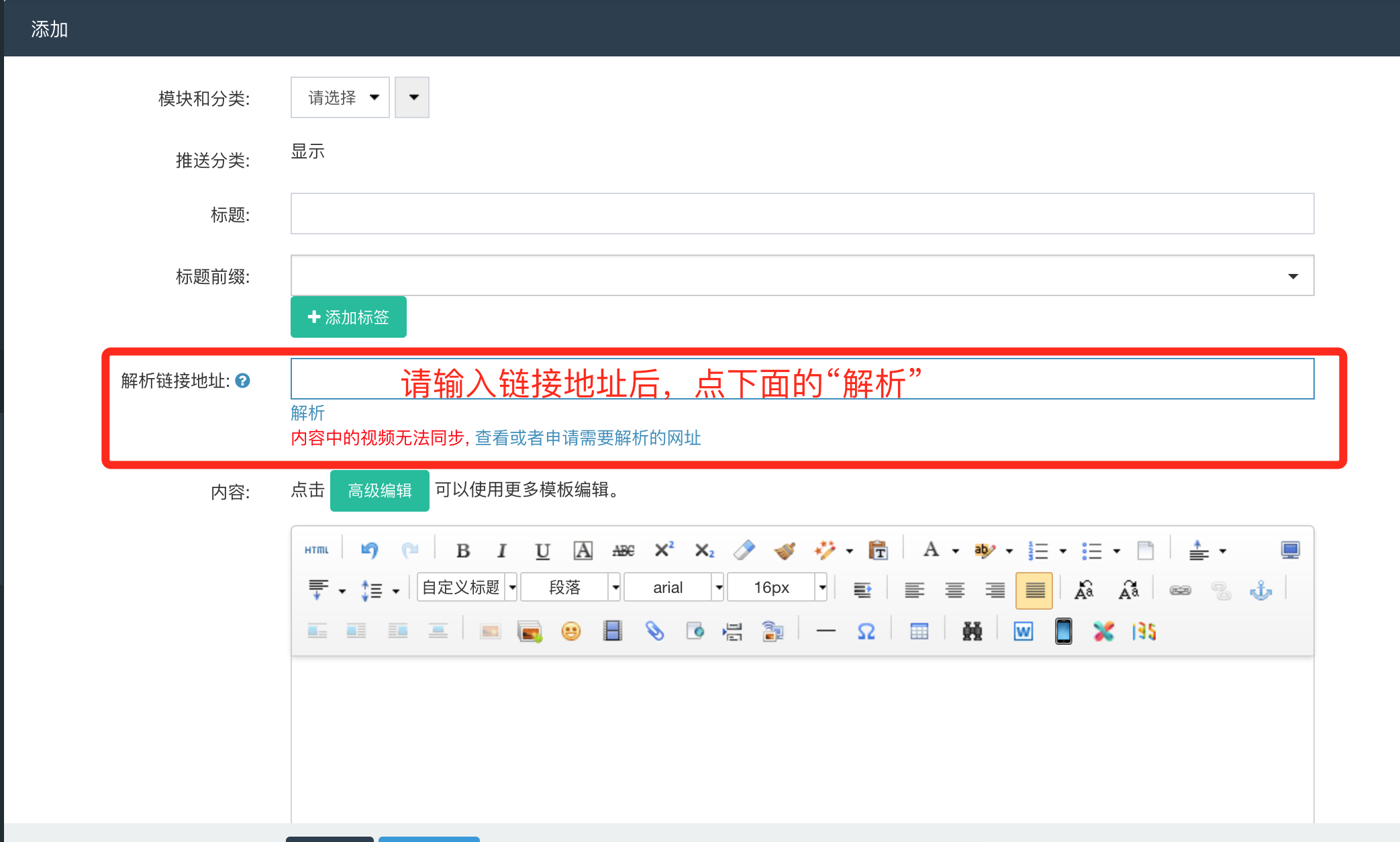 **解析链接地址:**是完全还原公众号、其它自媒体内容和样式的简便操作功能,包括样式、图片。因为直接复制黏贴内容,经常会丢掉样式和图片。