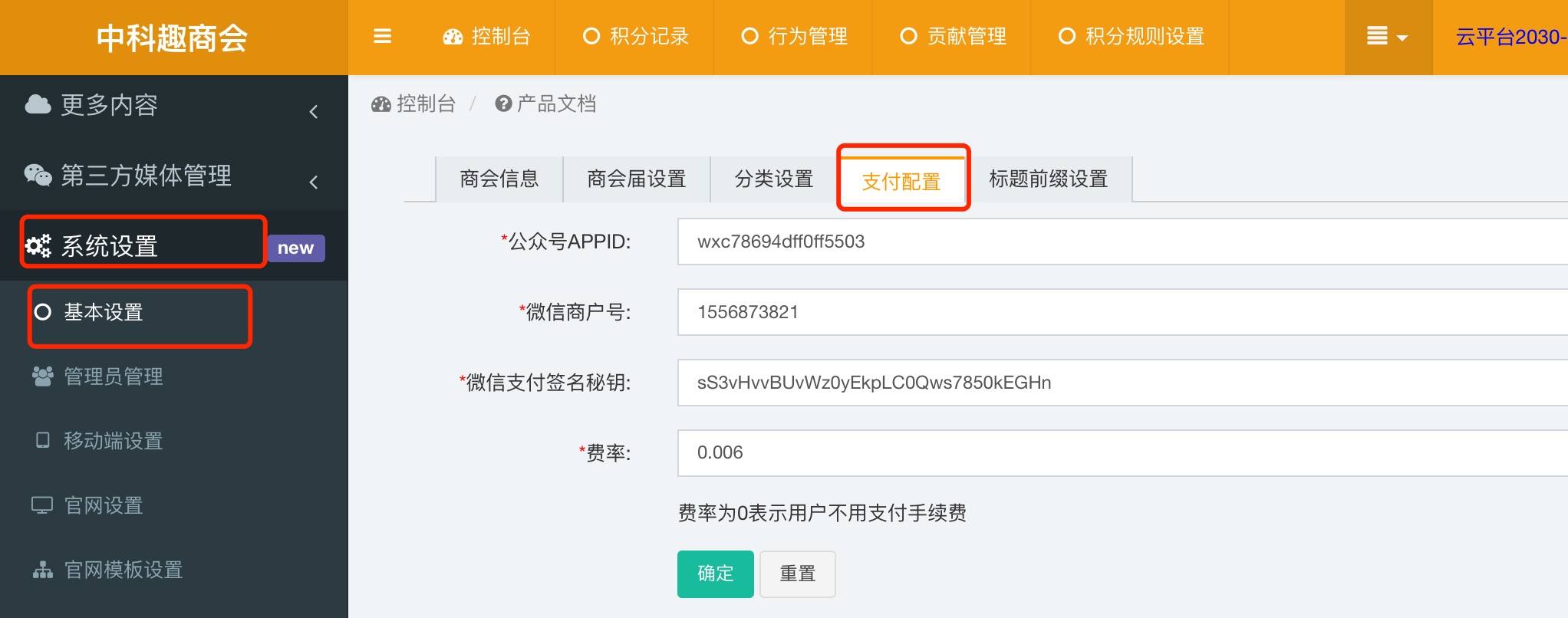 配置支付账号: