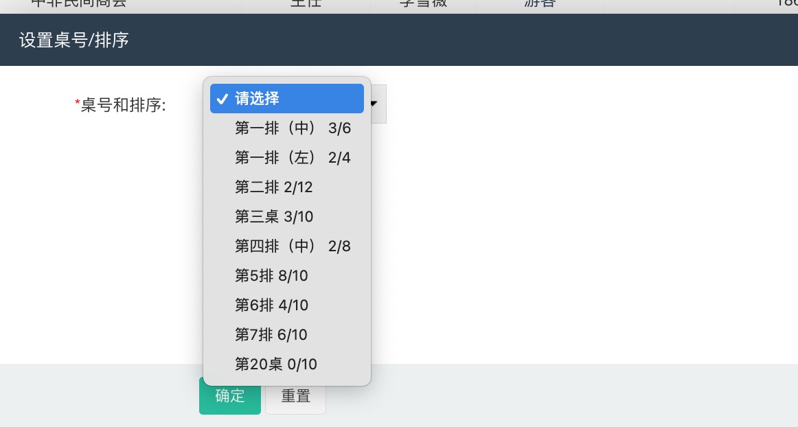 ,进行单个人的座位设置。下来选项桌位号后面的分数,分母表示该桌总的人数,分子表示已经安排人数。