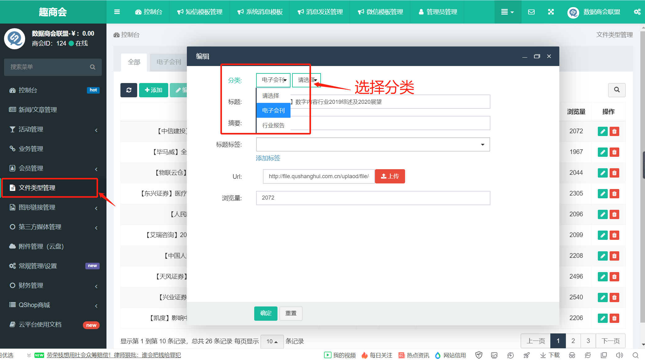 1.【文章类型管理】-【电子会刊】-【行业报告】-【添加】