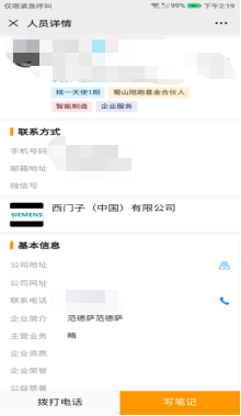点击通讯录里面的每一位会员都会跳转到人员详情页面